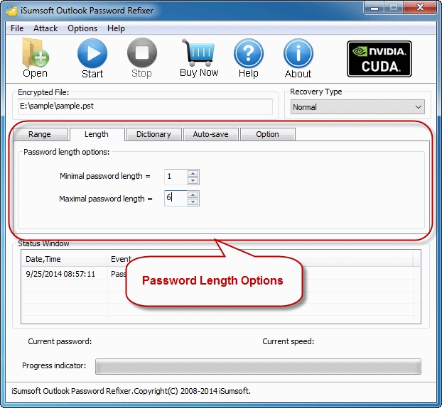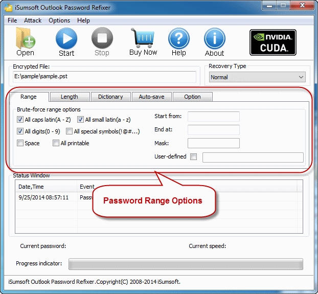 范围:设置范围选项可以确保加密的MS Outlook数据文件的密码丢失/忘记将缩短恢复时间并提高解密成功率。