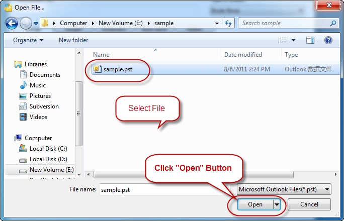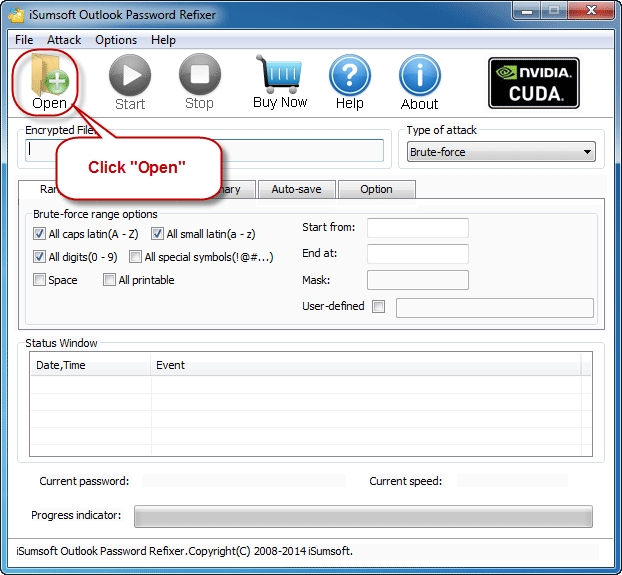在您的计算机上下载并安装软件,然后启动它。单击“打开”按钮并导入要恢复密码的Outlook.pst文件。