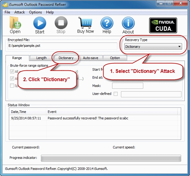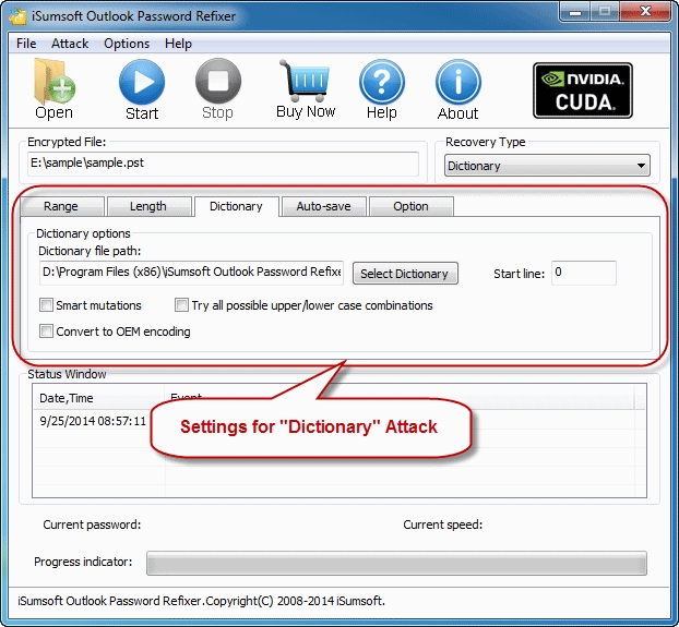 字典:通过尝试内置字典中的密码组合来恢复丢失的Outlook密码。您还可以使用各种语言创建自己的词典。最好使用常规单词或短语作为密码。下面的图片是字典式的说明。