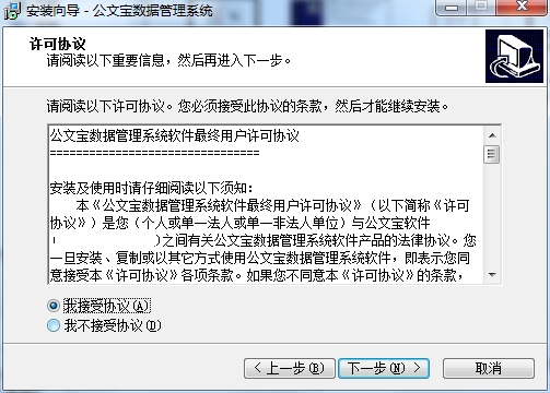 1、在PC下载网下载公文宝数据管理系统最新版压缩包,然后进行解压,解压后,双击exe程序,进入安装界面,然后点击下一步