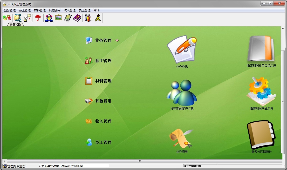 兴华派工管理系统电脑版是款功能十分全面且实用性相当强大的成交业务管理工具,兴华派工管理系统电脑版拥有业务管理,材料管理,员工管理,收入管理等一系列功能模块,兴华派工管理系统可以帮助用户每项业务所涉及到的员工、产品、材料、以及所用费用都有明确的记录,实现对业务、员工在不同侧面的管理。