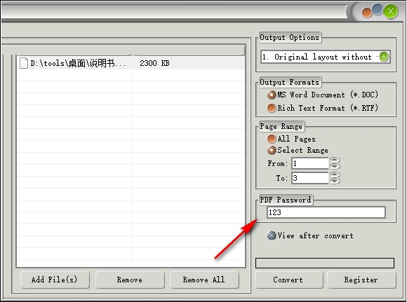 扫描到Word OCR转换器可以将加密的PDF转换为Word。您可以在应用程序中输入密码并选择布局选项,应用程序将为您自己完成工作。您还可以根据需要在转换中选择页面范围。