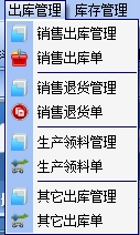 出库管理:销售出货,客户退货,生产领料,销售单据和客户退货查询,客户往来帐务,客户付款。