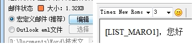 2、编辑邮件,在群发机窗口左边选择邮件类型为“宏邮件”,然后按“编辑”按扭,打开邮件编辑窗口。然后在邮件编辑中,点“工具栏”上的,选择相应的变量。在此,我们选择“列表宏1”,以与上一步的设置对应,加入后效果如下。