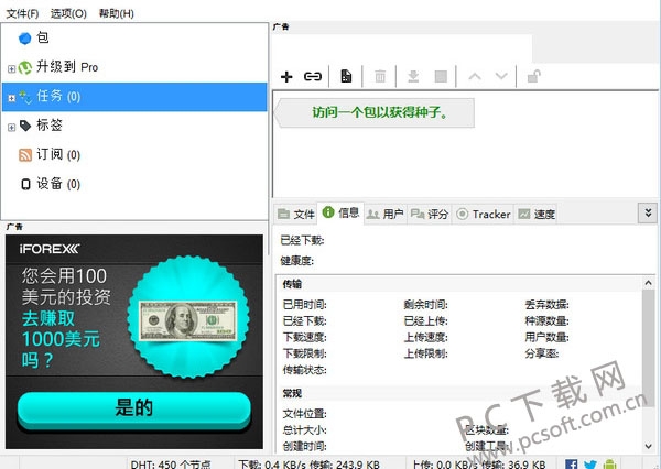 3、uTorrent中文界面功能清晰,操作快捷,可快速断点续传。
