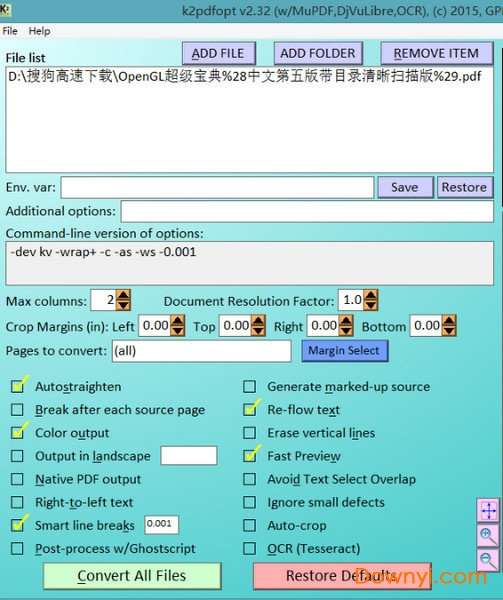k2pdfopt gui使用教程: