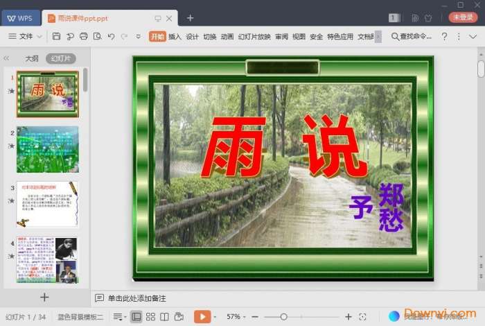 雨说课件ppt通过四份课件帮助同学们更好的理解其中的内容。通过对雨这种司空见惯的自然现象,作者想表达的是什么?通过这些课件可以帮助同学们解答这个问题。欢迎来体验!