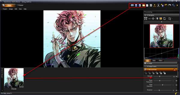 您可以使用屏幕上的鼠标右键随时将处理后的图像与原始图像进行比较。