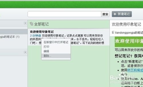 5.删除欢迎使用印象笔记这篇文章,你只要在全部笔记下,右键选中删除就可以了
