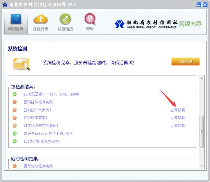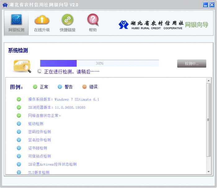 Q2:湖北农村信用社网上银行向导的系统检测能做什么?