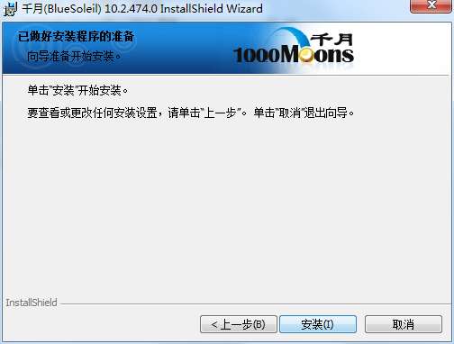 4、以上信息都已设置完毕会进入到千月(BlueSoleil)安装界面,我们直接单击【安装】即可开始安装。