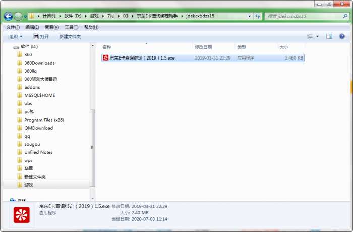 2.解压京东E卡查询绑定助手软件,运行“EXE.文件”