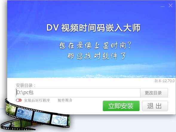 3.双击打开,进入dv视频时间码嵌入大师软件界面,选择安装位置,点击立即安装