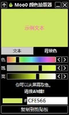 Moo0颜色选择器使您可以通过简单地按键盘上的“ Alt”键来选择感兴趣的颜色。该工具会自动在主面板中显示记录的值,例如色相,饱和度和亮度。