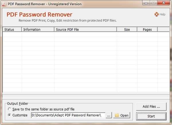 Adept PDF Password Remover是一款相当优秀的pdf解密工具,软件操作方法很简单,只需要将忘记密码的PDF文档放进去就可以轻松解密了,解密后就可以对PDF文档进行编辑修改、打印或者更改注释等操作了。