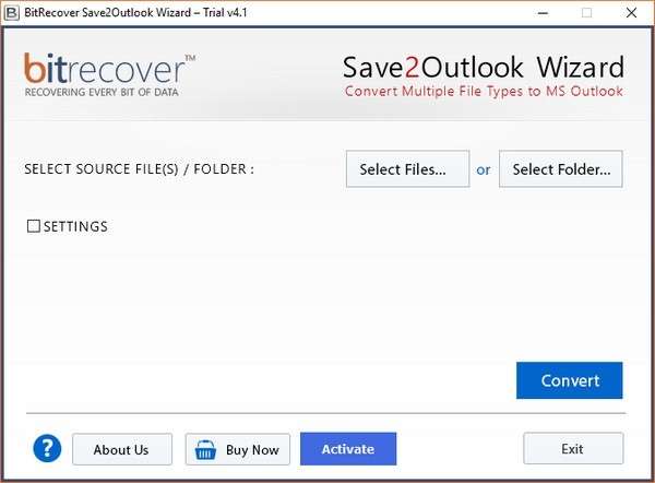 BitRecover Save2Outlook 工具专门用于将不同类型的文本文档导入 Microsoft Outlook。它是一个非常适合将 HTML、MHT、TXT、RTF、PDF、XPS、DOC、DOCX 等文件扩展名转换为 MS Outlook 的 PST 格式的程序。