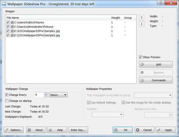 随机或按排序顺序显示图像。有几种随机模式可用,包括加权随机化,使您可以比其他人更频繁地显示某些图片。