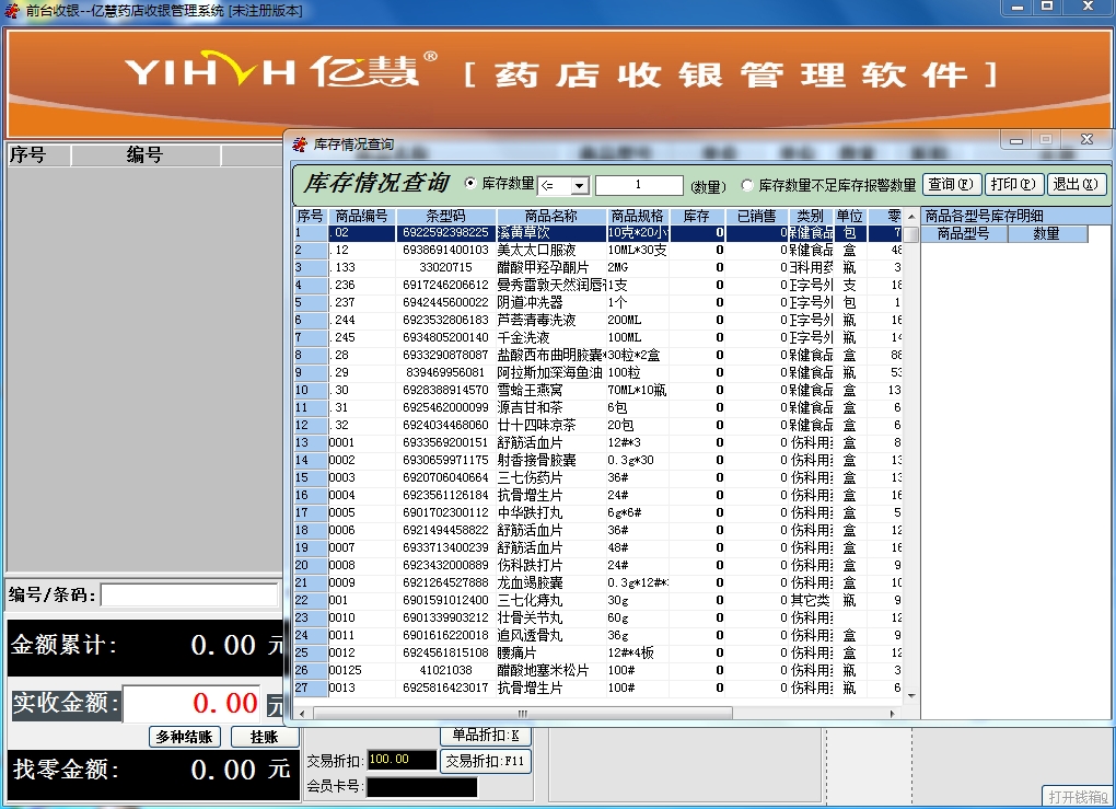 亿慧药店收银管理系统软件特点