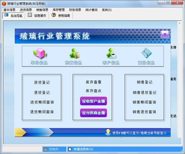 宏达玻璃行业管理系统官方版是款高效专业且专门适用于从事玻璃行业的中小型或者个体经营公司的管理工具,宏达玻璃行业管理系统官方版开业有效的帮助用户进行日常财务、库存、进货和销售状况的统计,灵活打印,操作简单快速上手,从而大大提高工作效率。