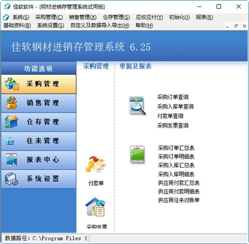 佳软钢材进销存管理系统最新版是一款界面美观的钢材库存管理软件。佳软钢材进销存管理系统最新版使用流畅便捷,为广大用户提供了钢材进库和出库管理功能,此外佳软钢材进销存管理系统官方版还支持采购管理,销售管理,仓库管理等功能,可以极大的提高了仓库管理能力。