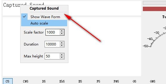 5、captured Sound是捕捉的声音频率设置,可以在这里设置声音的波形文件数据