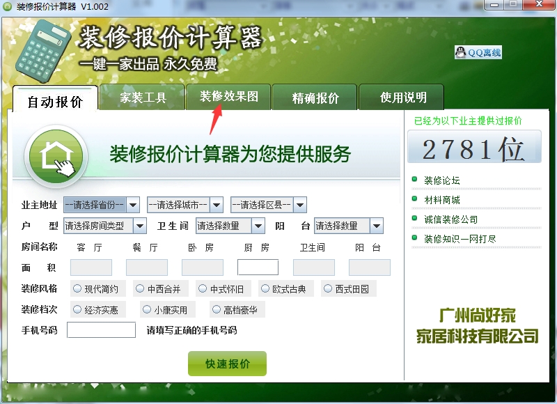 装修报价计算器使用方法