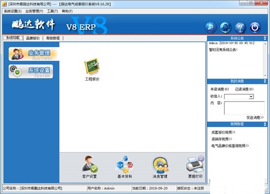 鹏达电气成套报价软件是电气行业必不可少的工具,本软件的成套报价具有功能强大,操作简单的特点,迎得广大用户的喜爱,成套报价简单的分为三步:优质步新建工程信息,第二步新建设备信息,第三步新建设备的元件信息。在输入全部元件信息后,对设备信息进行调价即可,较后系统便自动生成:报价封面、设备总表、设备清单。您也可以发送到excel进行二次处理。