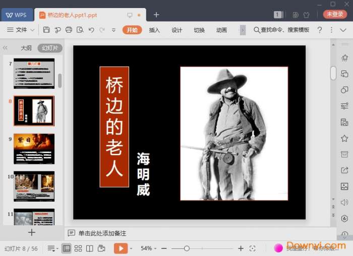 桥边的老人公开课ppt带你再次领略海明威的文学作品,让你在使用之后可以更好的学习这篇课文。课件中的内容都是比较不错的。如果你需要这款课件欢迎来体验!