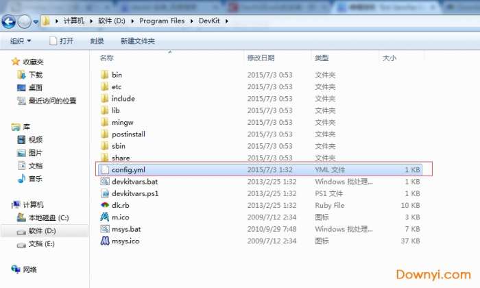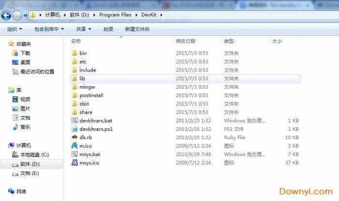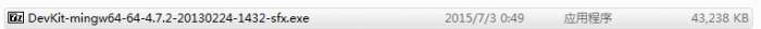 1.下载devkit-mingw64-64-4.7.2-20130224-1432-sfx.exe完成后,双击解压,解压时选择自己指定的文件路径(我的路径是:d:\program files\devkit)