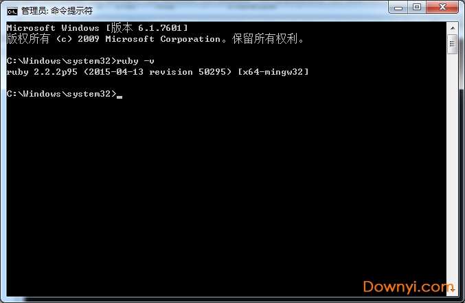 安装完成后,打开dos命令窗口,输入:ruby -v,如果出现版本信息,则表示安装成功。