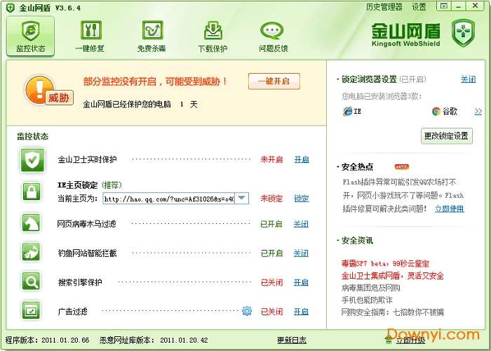 4.即使用户不小心访问到了被挂马的页面,也可以安心的浏览页面不中招,金山网盾是你系统的保护神。