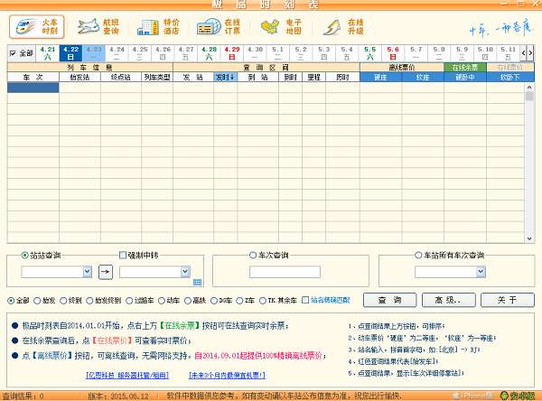 极速火车时刻表是一款火车票查询软件,软件功能强大,用户通过软件能够查询全国的列车时刻以及火车票剩余量,非常实用。