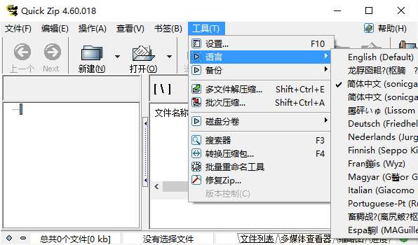 quickzip解压软件是一款非常轻便也是非常实用的压缩解压软件,这款软件支持现在主流压缩格式,让你在日常使用过程中方便快捷。软件无需安装,解压即用,而且还有多种语言供你选择。喜欢的话就来下载试用吧!