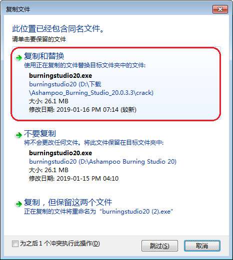 激活方法:软件安装完成后关闭软件,将下载好的“crack”文件夹内的“ash_inet2.dll”和“burningstudio20.exe”复制到软件的安装目录下替换(如上图所示),重新打开软件激活完成!