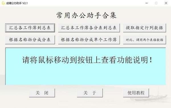成德公办助手是一款使用简单、操作方便的办公助手软件,可永久免费使用。适用于日常办公,主要功能有:汇总表格数据、拆分表格数据、提取指定行列数据、对比表格数据、查询调用填充表格数据等。