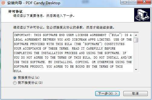 1.在PC下载网下载全能PDF工具箱最新版安装包,解压后,双击exe程序,进入安装向导,阅读许可协议,点击“我接受此协议”,单击下一步