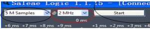 逻辑分析仪里边有 2 个非常重要的参数,就是采样深度和采样频率。大家可以看到在这个软件中,有 两 个 可 以 选 择 数 字 大 小 的 地 方 , 第 一 个 就 是 采 样 深 度 , 第 二 个 是 采 样 频 率前边那个 5M 代表我们从开始采集,一共采集到 5Mbit 个数据他就自动停止了,后边的 2M 代表我们 1s 钟可以采集 2M 个 bit 位的数据,那么这么算下来,我们这样设置,可以采集 2.5s 的数据。对于 saleae 逻辑分析仪的强悍之处在于,他把采集到的数据通过 USB 高速通信实时的发送给了电脑,所以采样深度取决于我们电脑的内存,可以上到几个 G,也就是说,如果我们设置了 1G 的采样深度,采样频率是 1M,那么我们就可以采集近 17 分钟的数据保存下来慢慢分析,这对于大家分析一些芯片的数据信息非常有用。