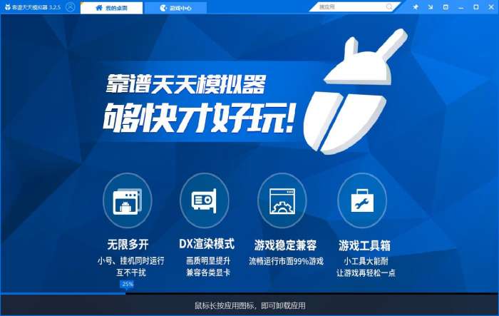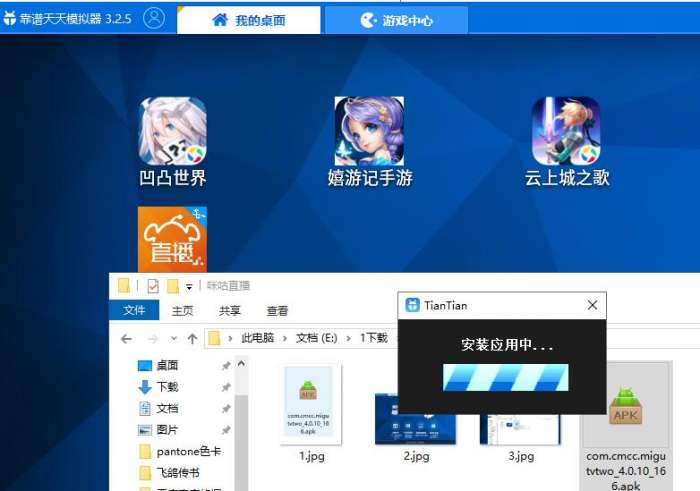 3、将下载好的安卓APK文件直接拖入天天模拟器主界面,天天模拟器会自动帮你安装。