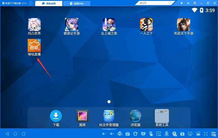 4、安装完成后你就可以在模拟器中找到已经安装好了的咪咕直播电脑版客户端,点击图标就可以使用了!