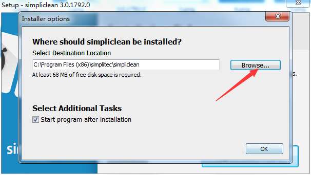 1、在PC下载网下载电脑垃圾清理工具(simpliclean)官方版的压缩包,解压后,双击exe文件,选择安装语言,点击OK