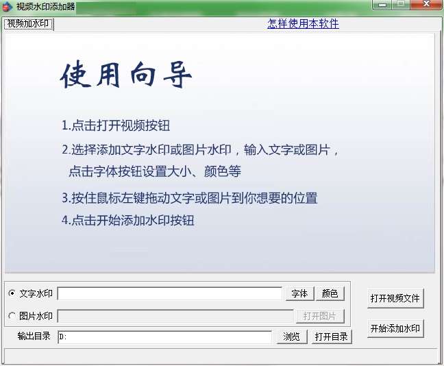 简单的操作界面,简单几步即可为视频添加水印效果。