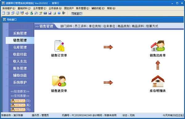 一、基本功能:智能订货、进货入库、进货退回、销售出库、销售退货、报损、报溢、调入、调出、拆零、组装、盘点、收款、付款、预收、预付、收入、支出、成本、利润及财务会计核算等。