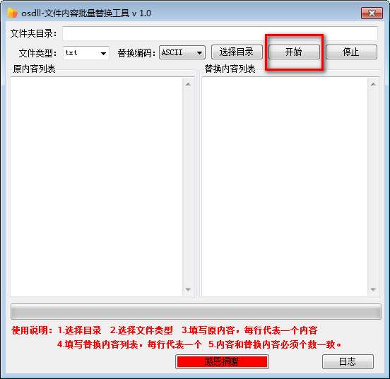 提示:回车为一行,可以有很多行,但是原始内容列表必须和替换内容列表行数一致。