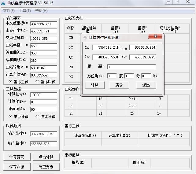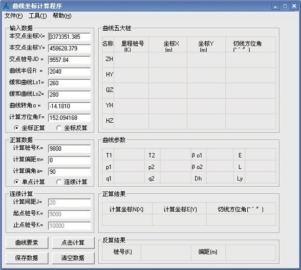 2.附有正算、反算功能,正算:通过里程和偏距计算坐标,反算:通过坐标反推里程和偏距。