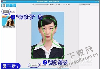 4、点击自动抠图后,进入图片抠图界面,在要抠图的图片上简单画几笔,等想要的内容全部选中后点击完成抠图就成功了。手动抠图和形状抠图较为相似,直接手动将需要的图片内容画出来,然后点击完成就可以了。最后小伙伴一定要记得保存你抠玩的图片,不然就白费功夫了。