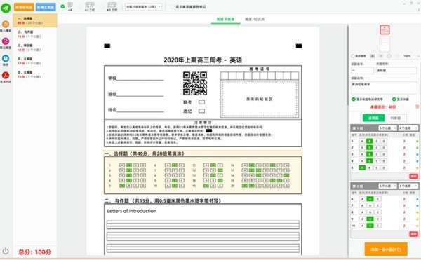 五分钟制作答题卡,所见即所得的智能答题卡编辑器,轻松设置知识点、难易度,支持先阅后扫、先扫后阅,三方答题卡阅卷,A4 幅面答题卡即可适配所有学科考试