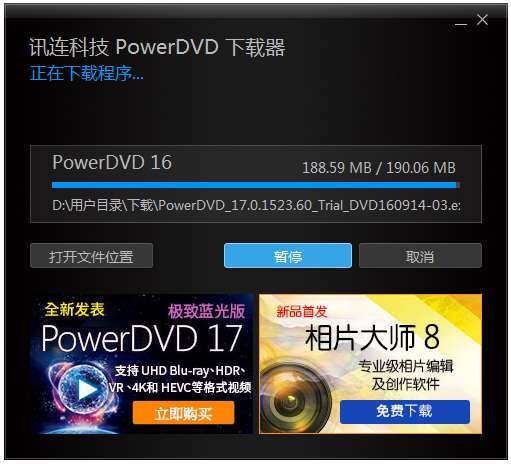 2.正在下载CyberLink_PowerDVD下载器
