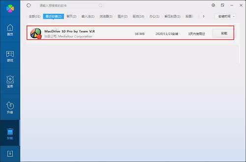 方法二:安装并打开360软件管家,在卸载选项的列表中找到MacDrive软件,点击卸载即可。