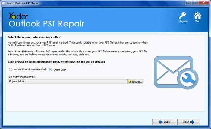 当您尝试修复损坏的PST文件使用收件箱修复工具(Scanpst.exe),它可能无法恢复它进一步的尝试可能会损坏严重。通过使用“智能扫描”选项的Outlook的PST修复Yodot可以有效地修复这些PST文件