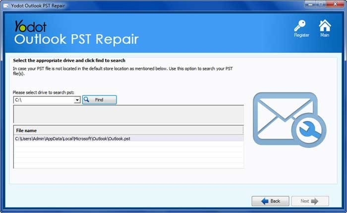在活动现场,当你不知道确切的位置,您的PST文件被修复,该软件提供了你的选项搜索PST文件的帮助下,其先进的扫描技术